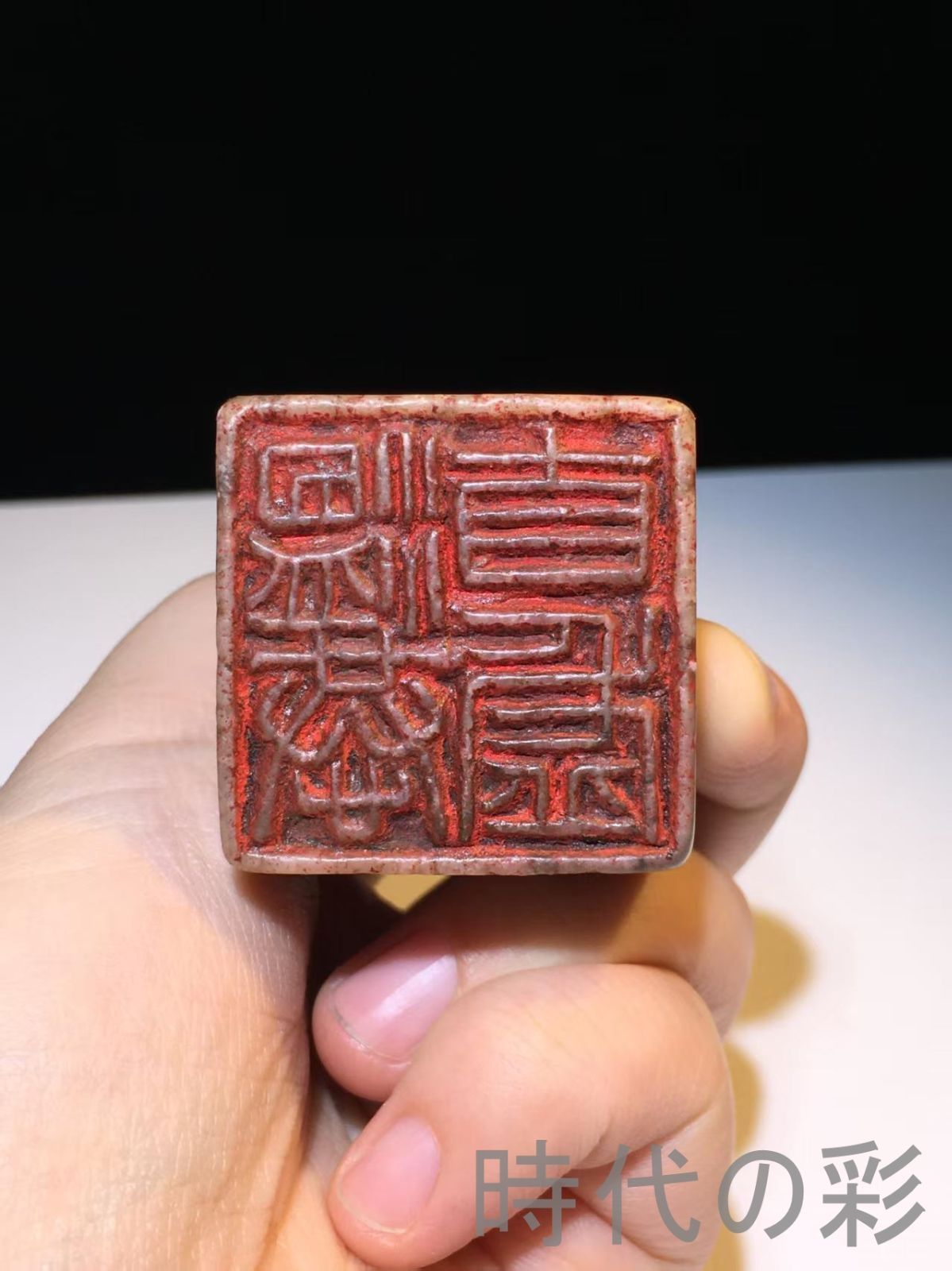 旧蔵の寿山石による名家作款の閑章印章。造形美しく、刀工流暢、沁色自然。包漿醇厚で実物は写真以上に美観を誇ります。鑑賞・收藏価値の高い逸品。