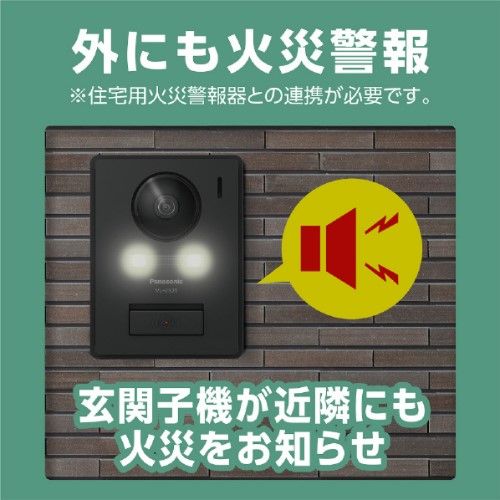●万が一火災が発生した際に、接続した住宅用火災警報器(※)と連動して、宅内のモニター親機や屋外のカメラ玄関子機が警報音などで通知して近隣にお知らせすることができます。※連動型の住宅用火災警報器を最大14台まで接続できます。