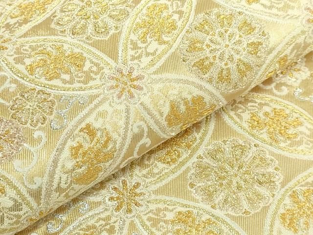 上 西陣河村織物謹製 手織り 六通柄袋帯 七宝花文 金銀糸 kh 5