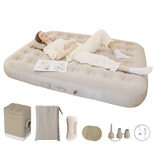 sumirenエアーベッドマットレ電動キャンプ簡易電動ポンプ内蔵電動エア90秒自動膨張折り畳み式シングルダブル25 cm厚 厚耐荷重300 kg取り外し 通気性 防水性 快適性収納袋付き枕付きUSB