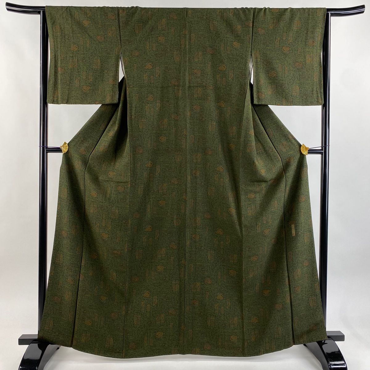 江戸小紋 身丈164 cm 裄丈64.5 M 袷 天女 獅子 茶緑色 正絹