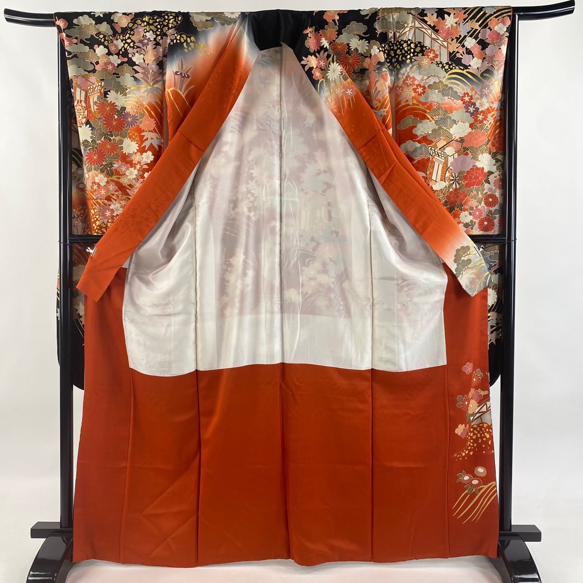 振袖 身丈166.5 cm 裄丈67 M 袷 御所車 松竹梅 金糸 金彩 朱色 正絹
