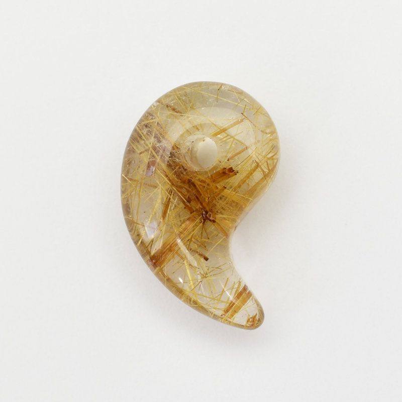 透明度の高い勾玉クォーツの中にしっかりと入ったルチルの金針が美しく輝く一点