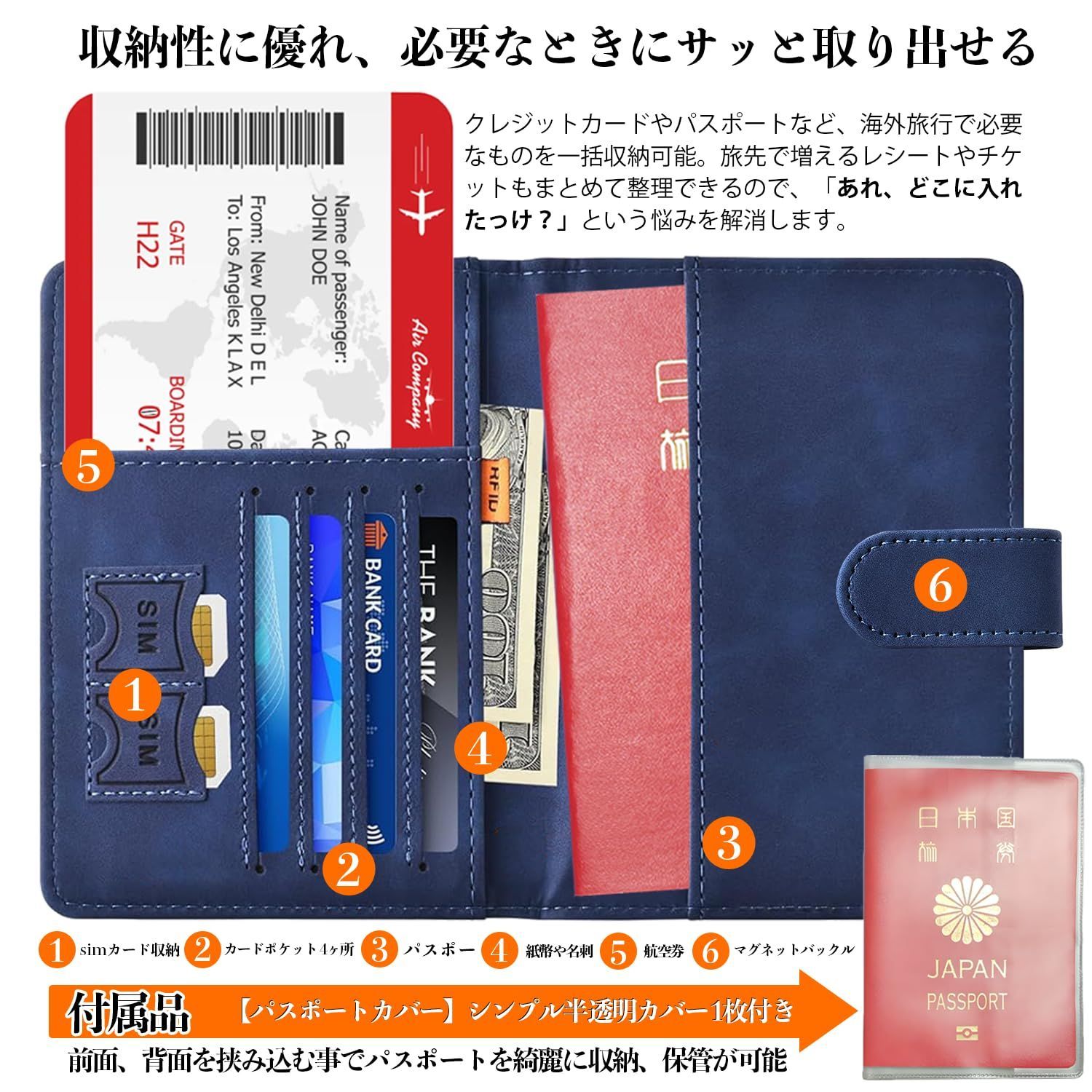 [Hueapion] パスポートケース スキミング防止 パスポートカバー 多機能収納ポケット パスポート カードケース ラベルウォレット 高級PUレザー 軽量 コンパクト おしゃれ 海外旅行 旅行用品 透明パスポートカバー付き (濃いブルー-タイプ2)