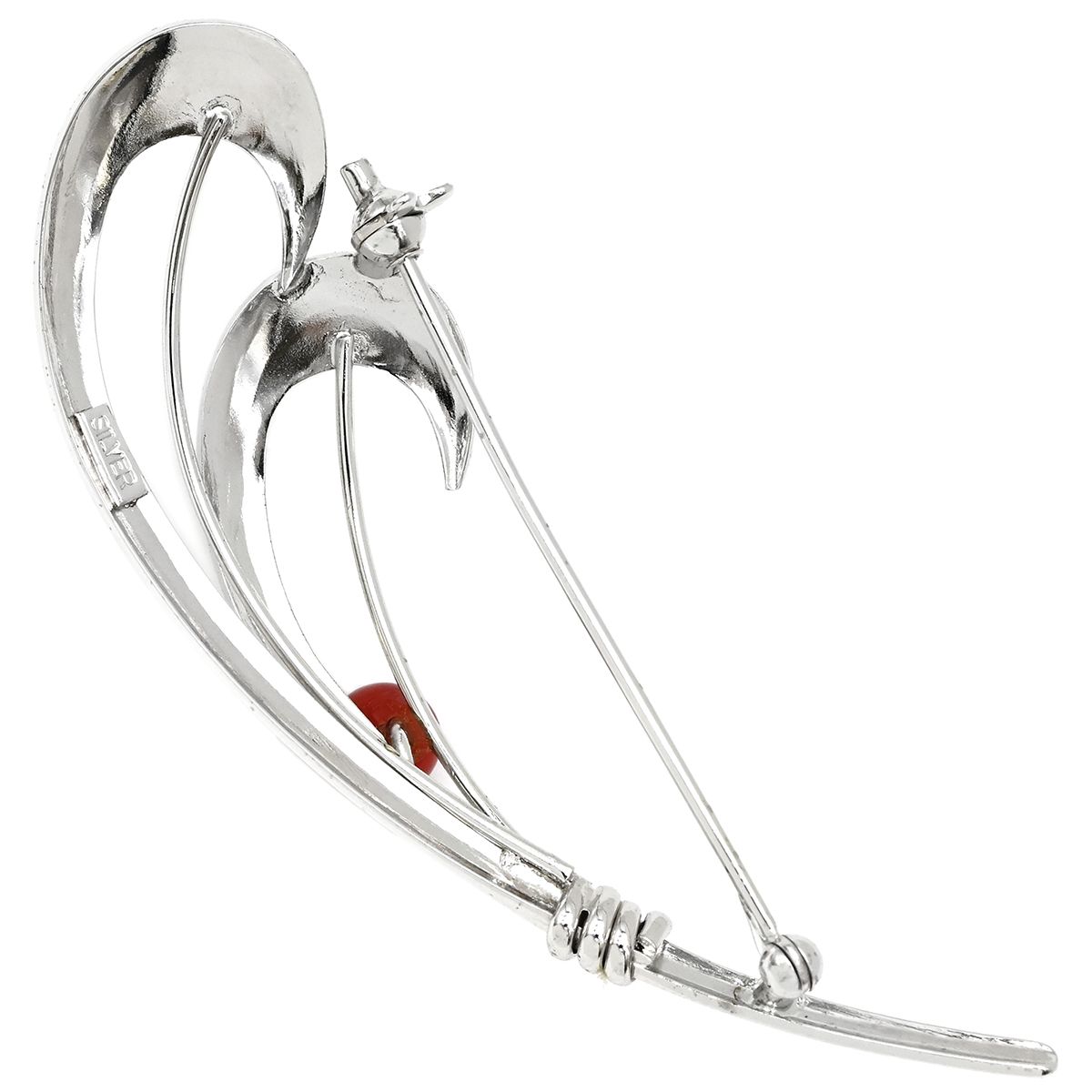 ブローチ 珊瑚 シルバー シルバー×コーラル 赤 流線ブローチ