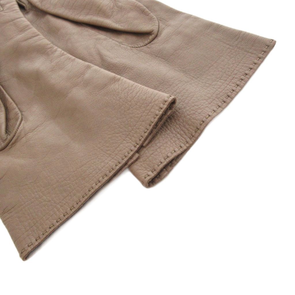 エルメス HERMES グローブ 手袋 レザー Hロゴ金具 7.5 茶 ブラウン UO GY 19