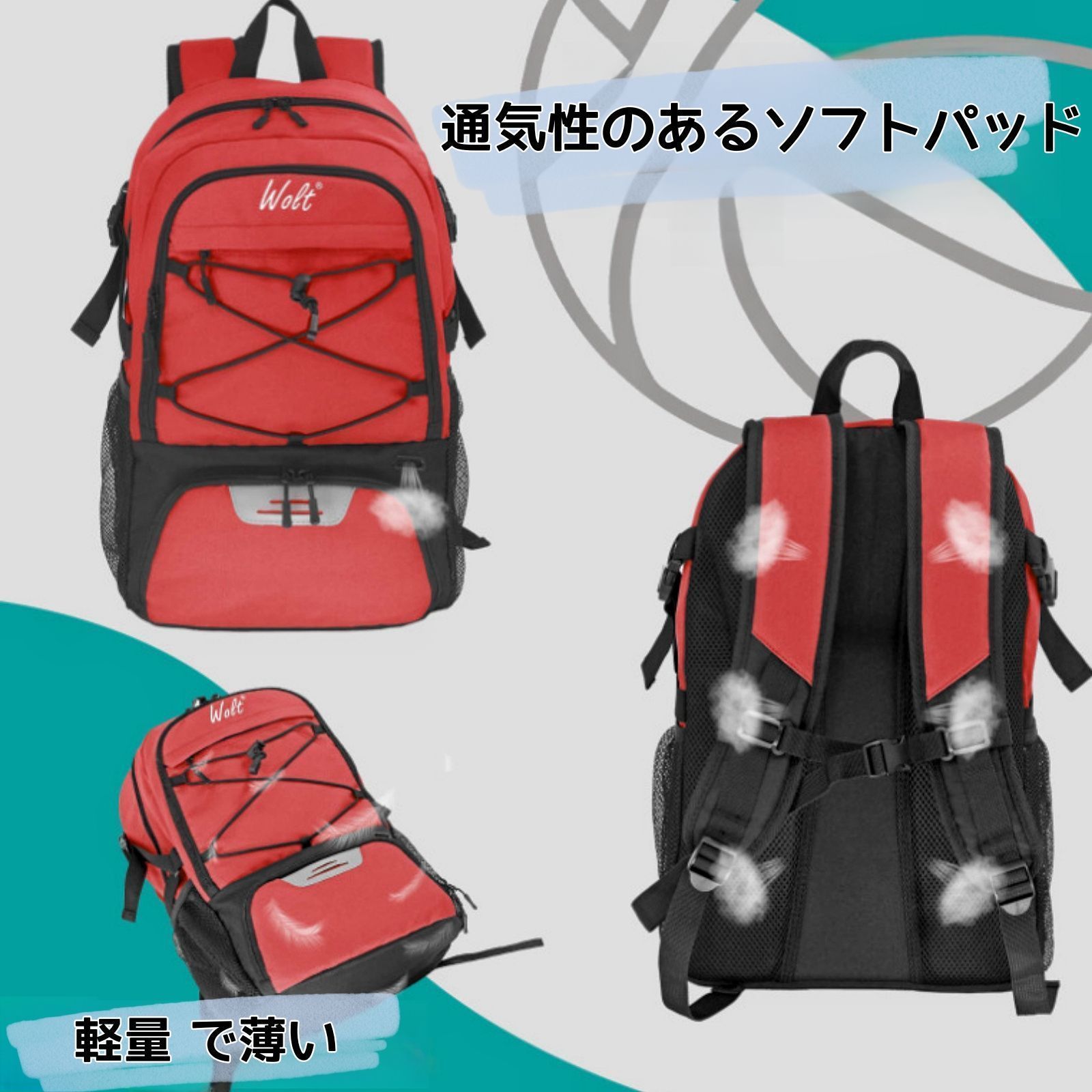 【球コンパートメント】バスケットボールリュックの?には、バスケットボール、サッカー、バレーボールを収納できます。バスケバックパックは、スポーツ用品を整理し、日常の練習や競技に最適です。