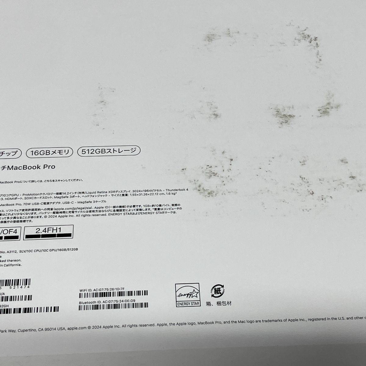 充放電回数 3回 Apple MacBook pro MW 2 W 3 J A 14インチ ノートPC M 4 2025 16 GB SSD 500 Sequoia