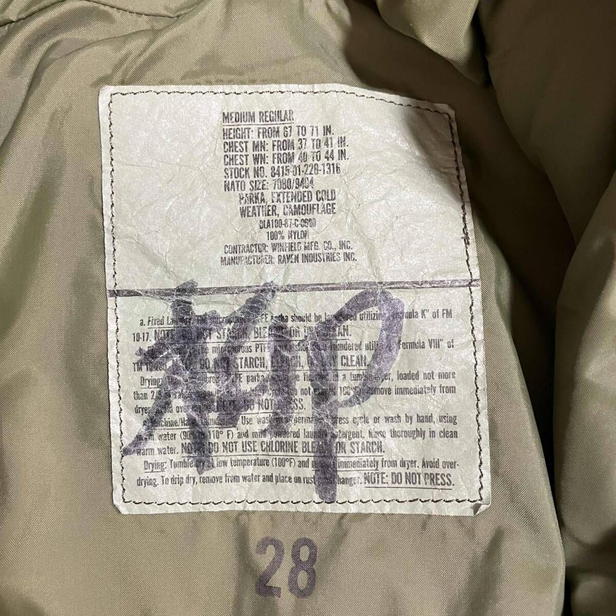 US ARMY USアーミー マウンテンパーカー RAVEN INDUSTRIES 前期型 古着 サイズM カーキ