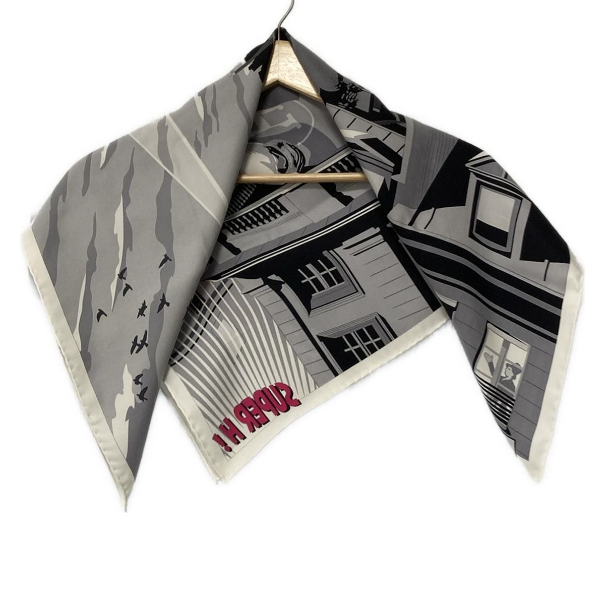 HERMES エルメス スカーフ カレ70 グレー×白×マルチ MINUIT AU FAUBOURG