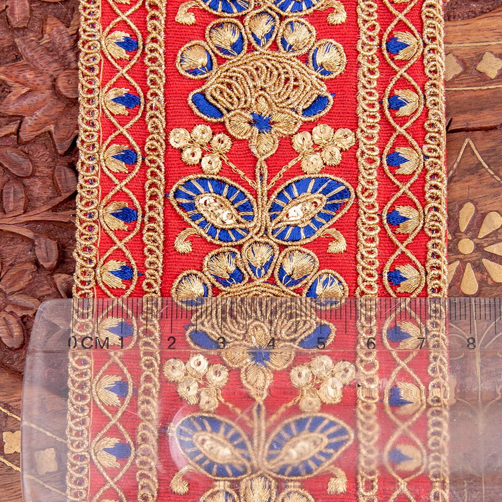 約9 m 太幅7.5 cm チロリアンテープ ロール売 - 金糸が美しい 更紗模様のゴータ刺繍 金魚草 Go