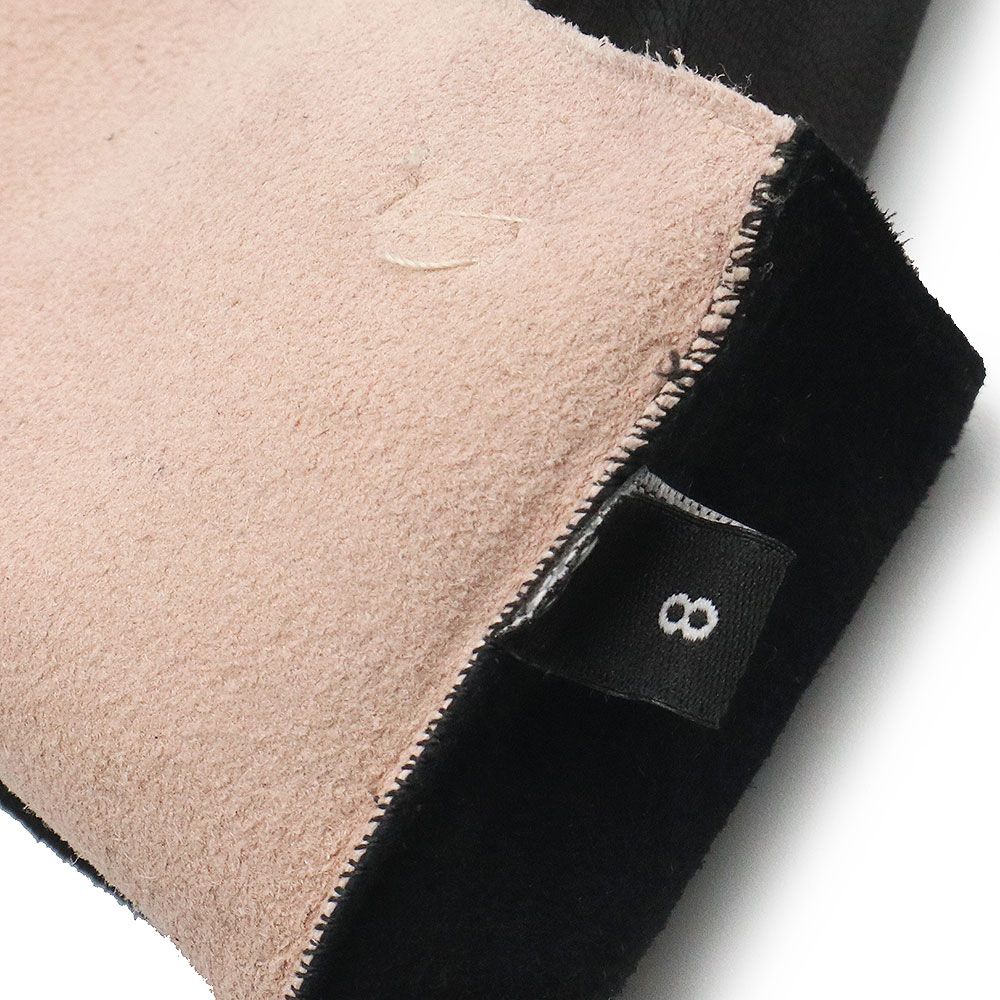 シャネル ココマーク マトラッセ ジップポケット付き フィンガーレス 手袋 グローブ #8 ラムスキン レザー バイ ピンクベージュ ブラック シルバー金具 AA 0718 CHANEL