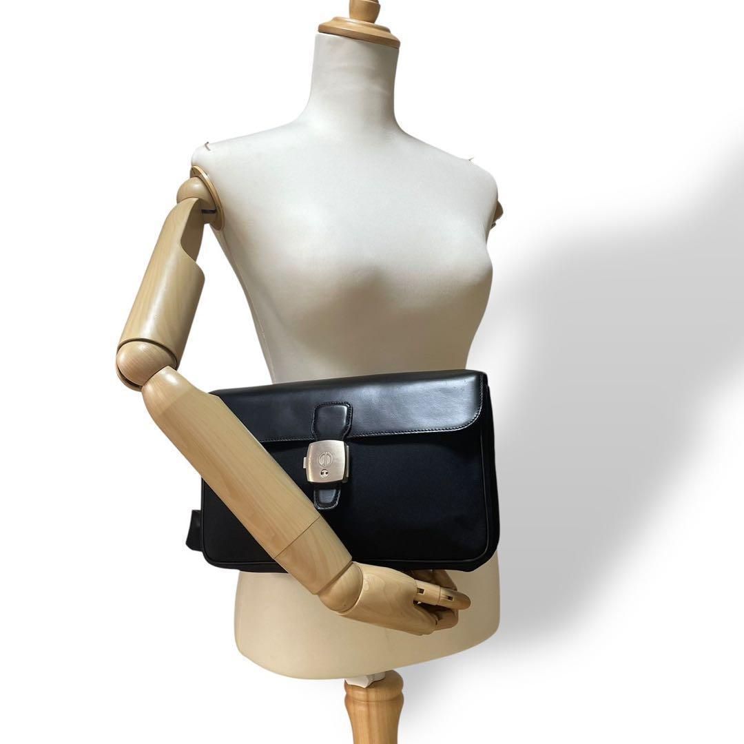 メンズ クラッチバッグ ハンドバッグ 小物入れ シルバー金具 鍵付き レザー ブラック 黒 ロゴマーク ナイロン
