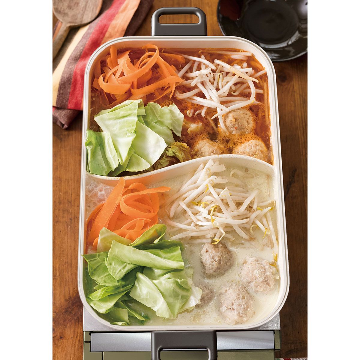 構成:本体、平プレート、2色鍋、収納バッグ、レシピブック、コンセプトブック