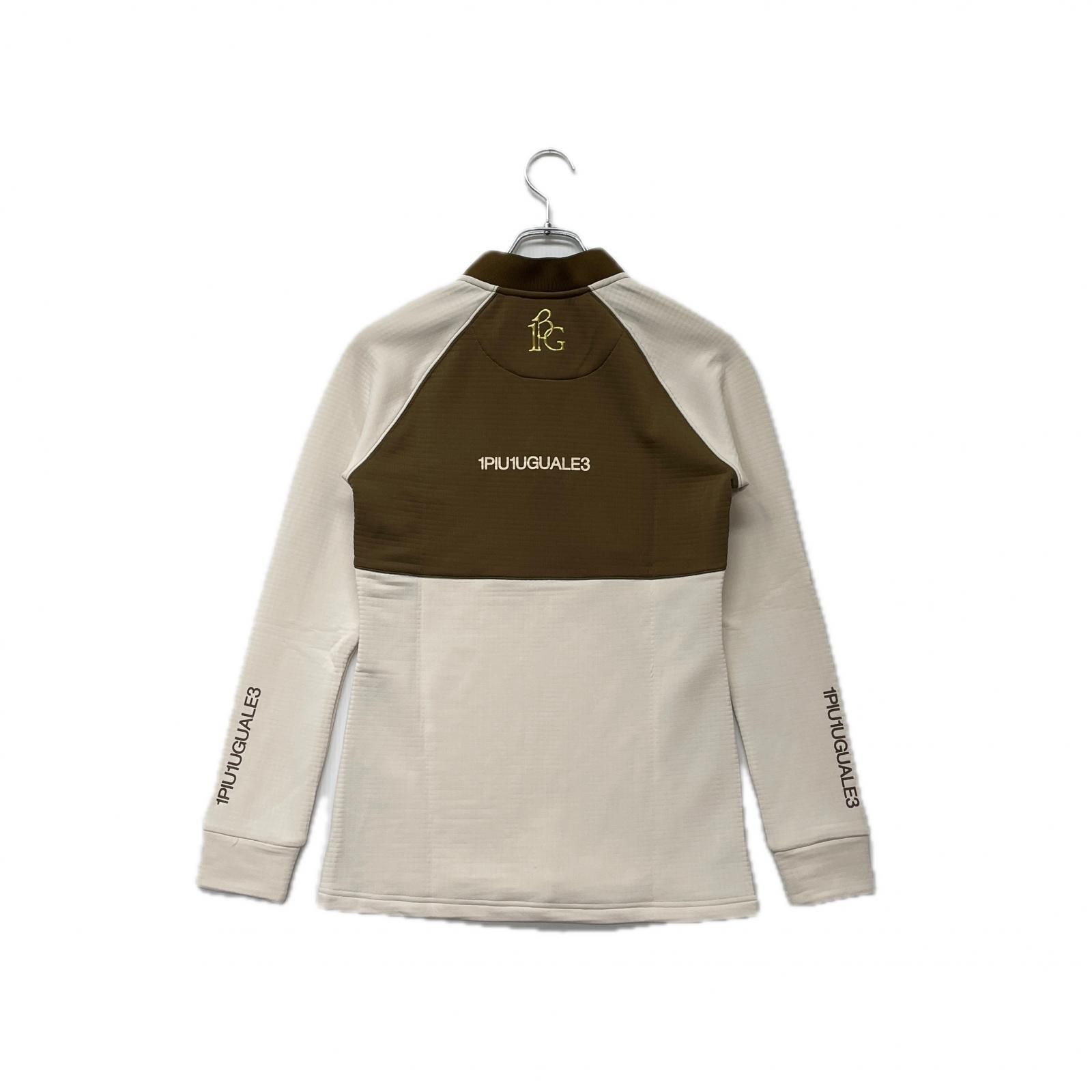 レディース ウノピュウノウグァーレトレ 1 piu uguale 3 長袖ポロシャツ S ブラウン×ホワイト 茶×白 ストレッチ 軽量