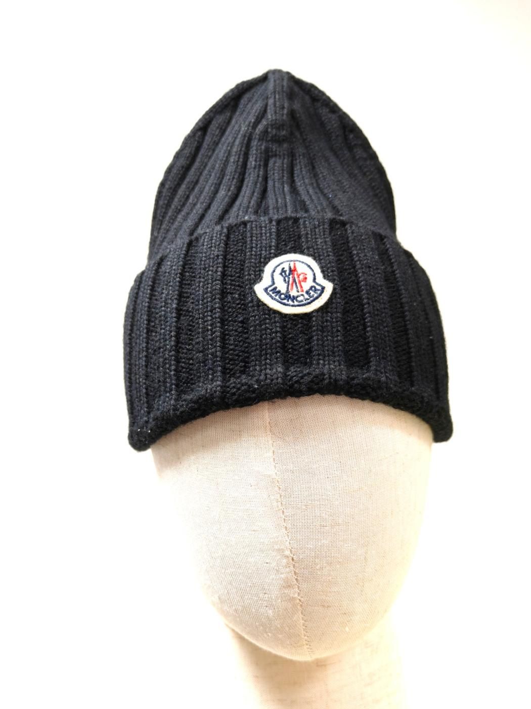 MONCLER モンクレール ニット帽 ビーニー ニットキャップ リブ アイコンパッチ 黒 管理番号 10453