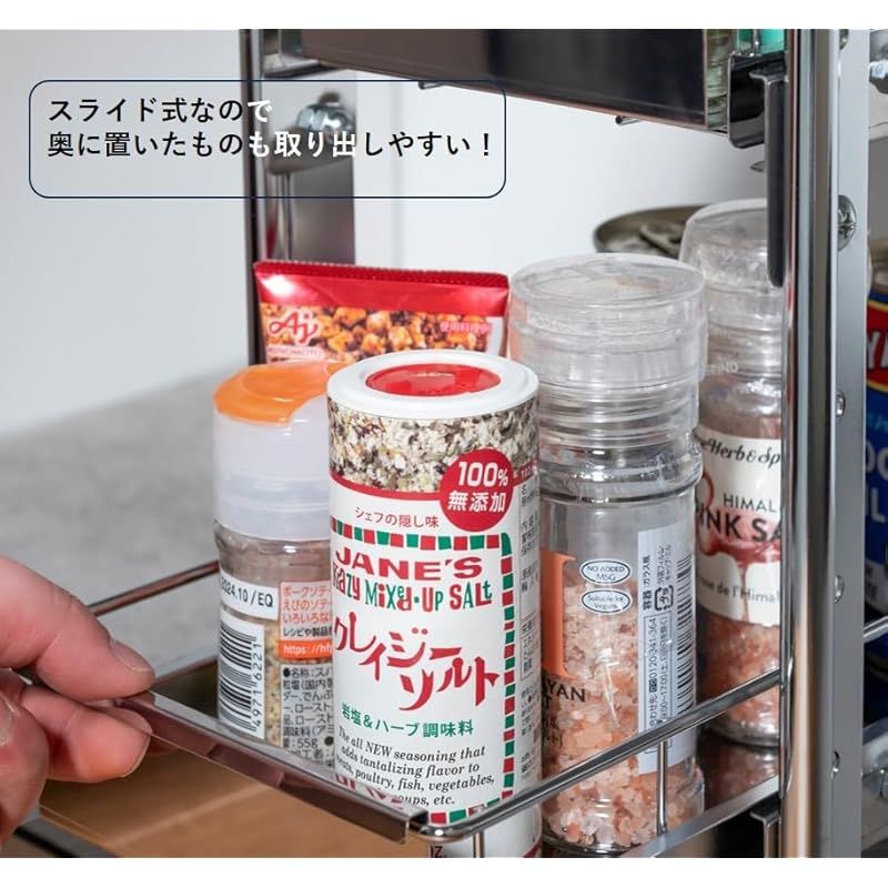 【キッチンを楽しく】大竹産業のスパイスラックは、新潟県燕三条で製造された職人技が光る日本製。耐久性のあるステンレス製で、長く愛用できる品質です。あなたのキッチンをより美しく機能的に。