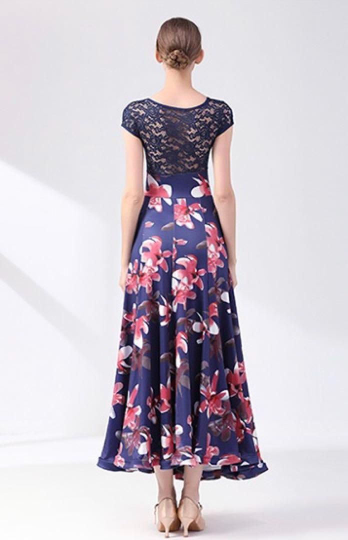華やかなスタンダードドレスワンピース。花柄の絶妙なデザインで、練習着にも最適!大胆かつ上品な雰囲気で、どんなシーンにも自信満々に。