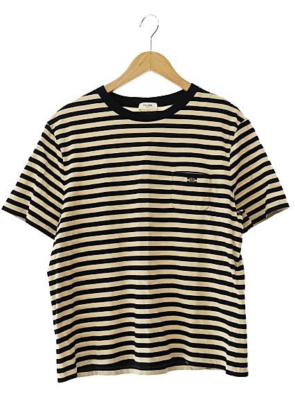 セリーヌ CELINE 24 AW Triomphe Regular T-Shirt In Striped Jersey トリオンフ ロゴ刺繍 ストライプ ジャージー レギュラー半袖Tシャツ 38 NB L ブラック ベージュ 251029