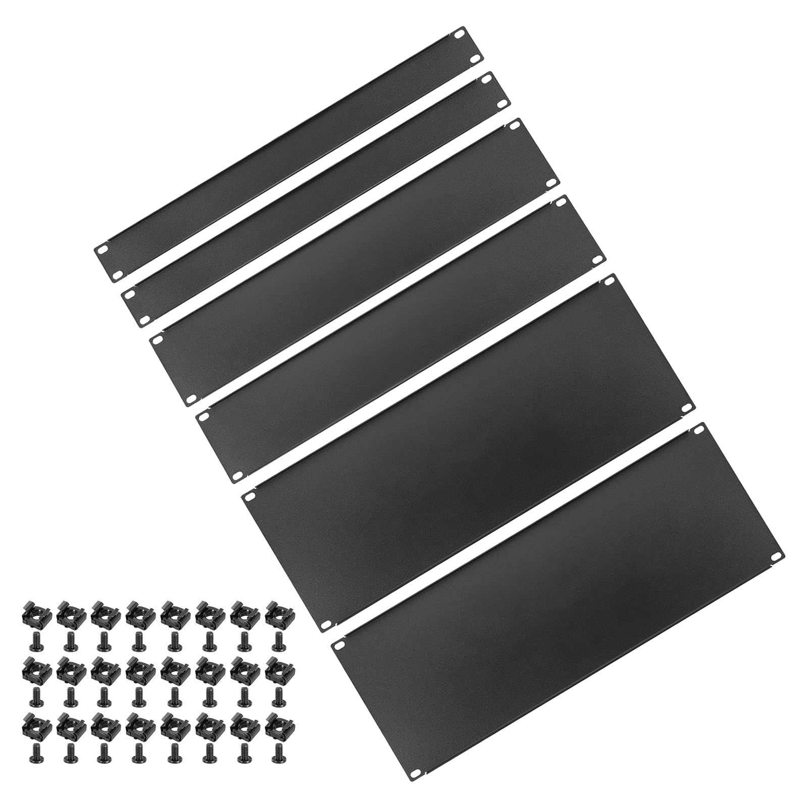 パッケージ内容: 6個 x ソリッドスチール製ブランクラックパネル、24個 x ナット、24個 x ネジ