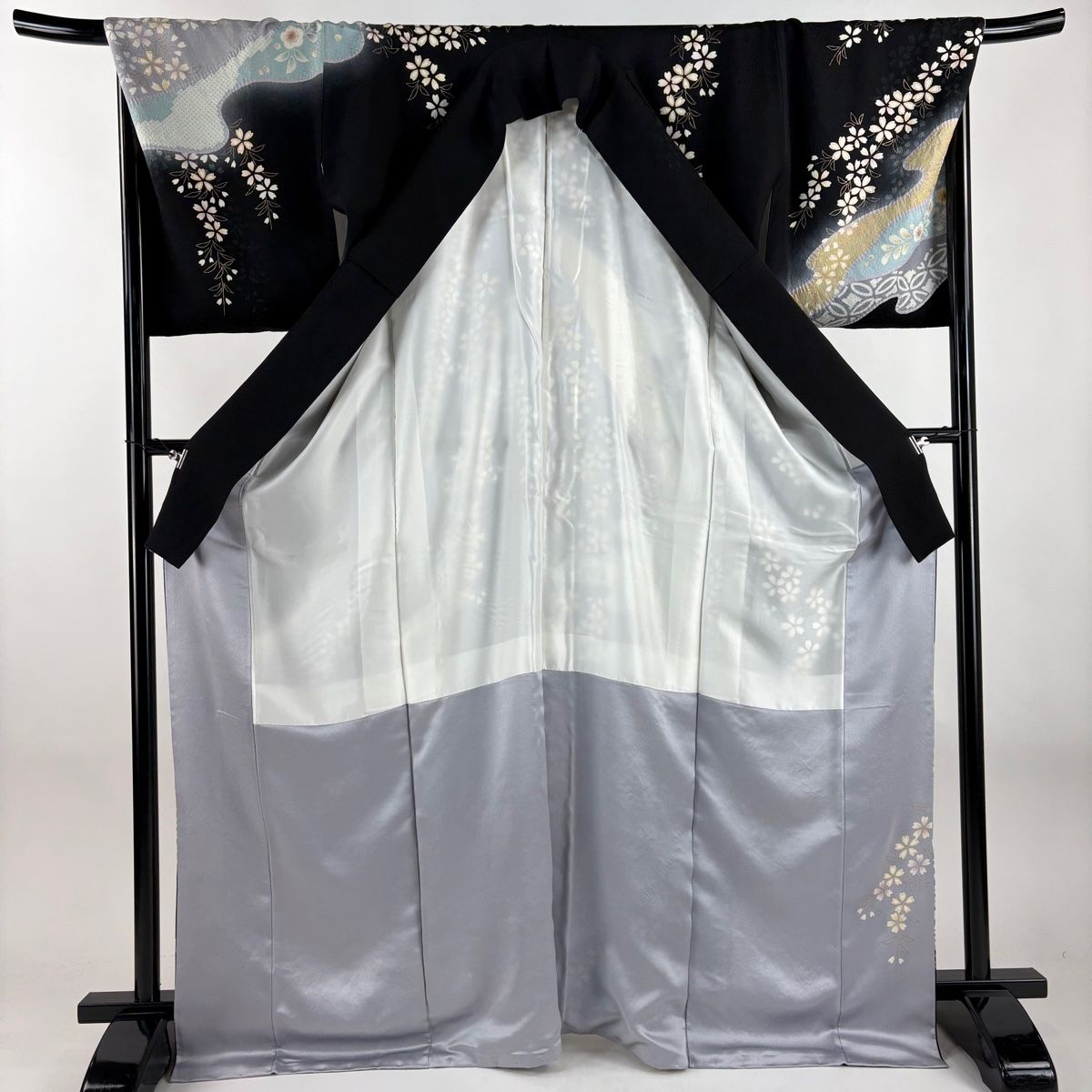 訪問着 身丈168.5 cm 裄丈69.5 L 袷 桜 草花 絞り 金糸 黒 正絹