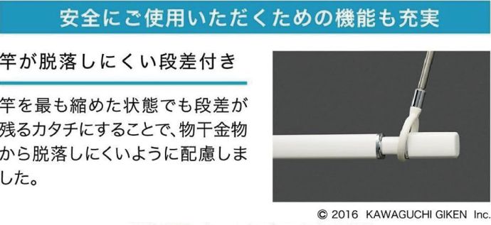 ホスクリーン 室内用物干竿 長さ:全長/最小1.45m~最大2.34m川口技研 QL-23-W 1本