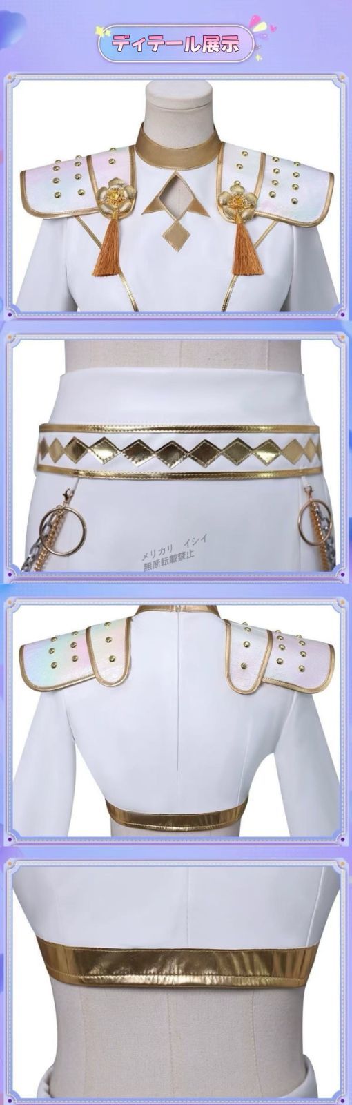 高品質 K POP魔法少女風 佐依コスプレ衣装セット ウィッグ付き 韓流アイドル風 白 ゴールド 打歌ステージ服