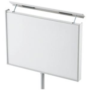 枠カバーが付いた両面タイプのサインスタンド。掲示物は上から出し入れ可能。上枠がカバーとなりホコリが入りにくい形状。