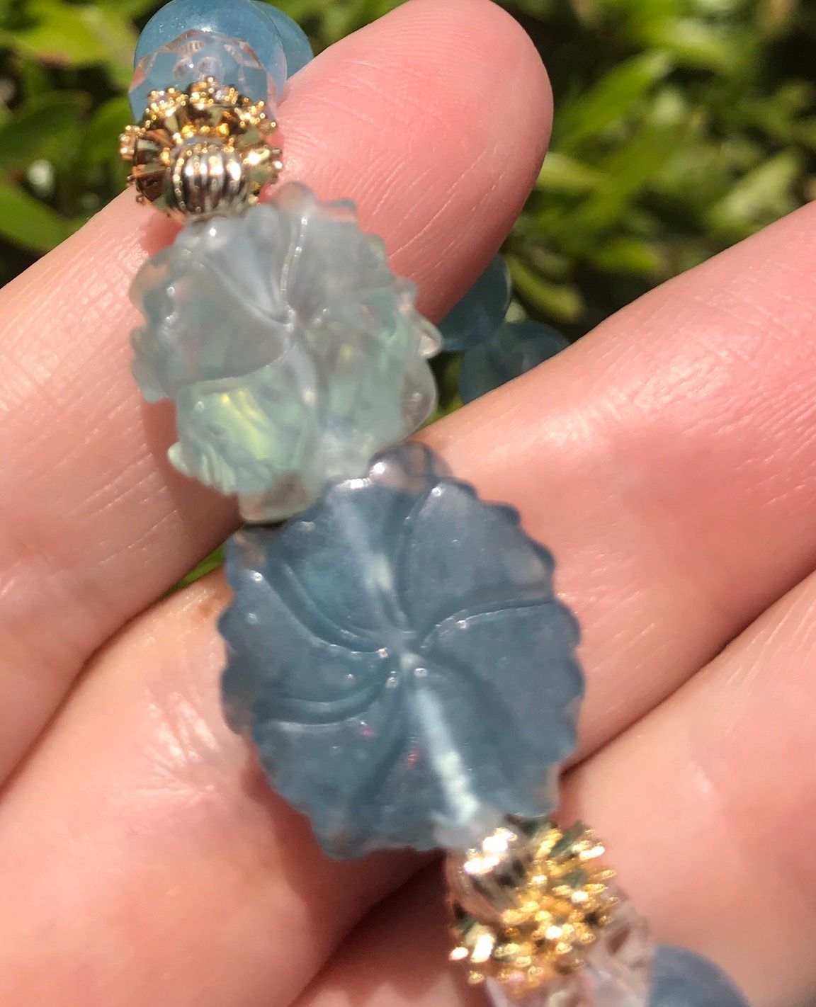 画像最後の3枚は別売りの他のアクアマリンお花デザインブレスレットとの比較です。