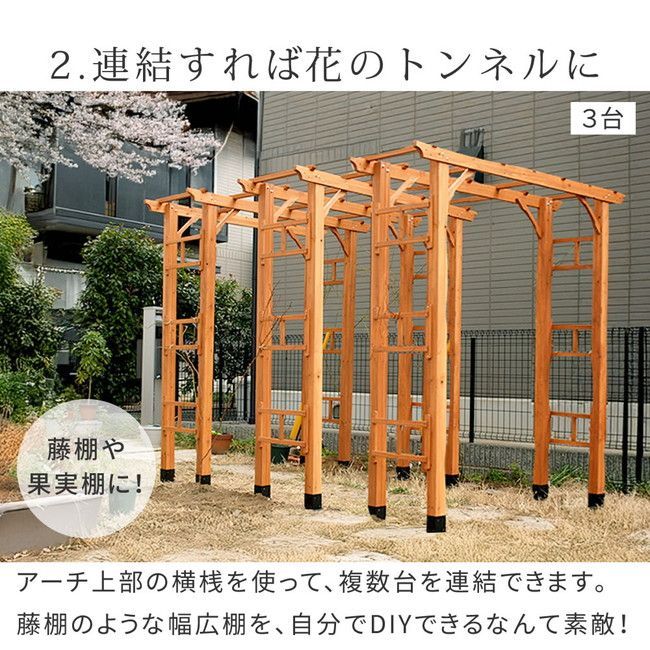 商品名:天然木製アーチ190 3台(平地用金具セット)