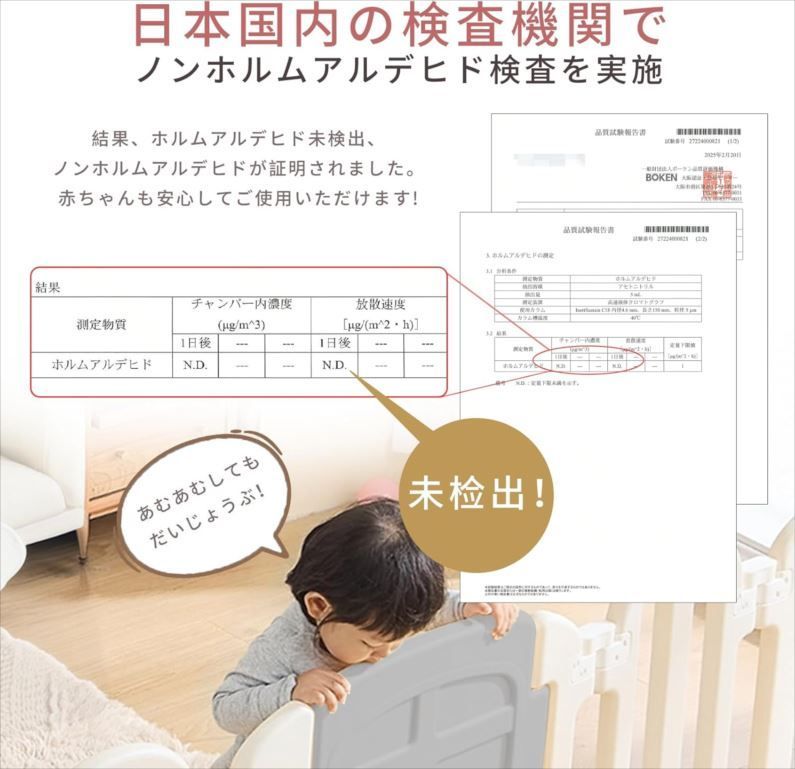 強固な素材で作られており、非常に高い耐久性を誇ります。お子さんが元気に走り回ったり、強く突っ込んだりしても、ゲートが壊れる心配はありません。さらに、ゲート自体は高品質な素材を使用しており、衝撃や摩耗にも強いため、日常的な使用に耐えることができます。お子さんの成長に合わせて、長い間活躍するアイテムです。