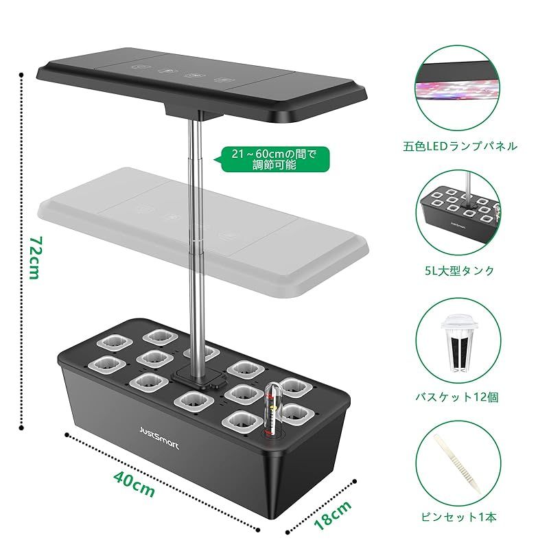 JustSmart 水耕栽培キット 室内 水耕栽培 おしゃれ 家庭菜園 キット LEDライト付き 自動水循環システム搭載 高さ調節 IGS-20 SE ブラック 0