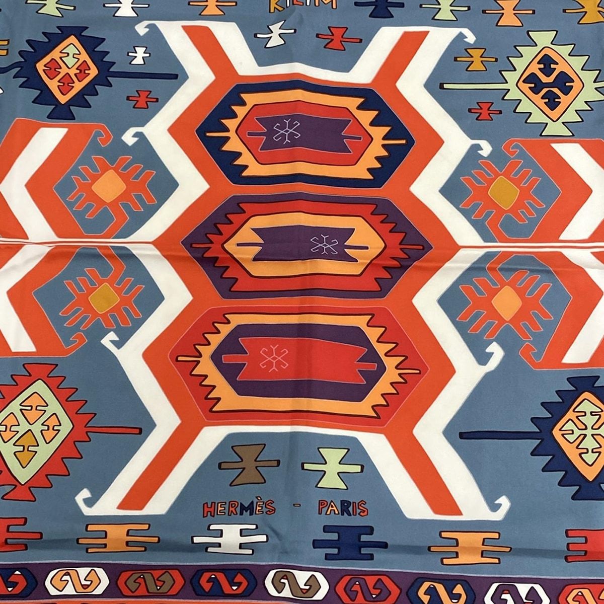 HERMES エルメス スカーフ カレ90 ダークグレー×レッド×マルチ KILIM