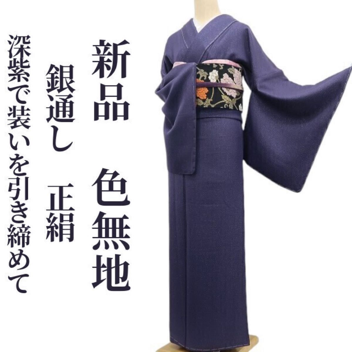 ❁tomihisa❁ 銀通し 着物 正絹 仕付け糸付 和装の頼れる味方 深紫で装いを引き締めて 小紋 色無地 6972