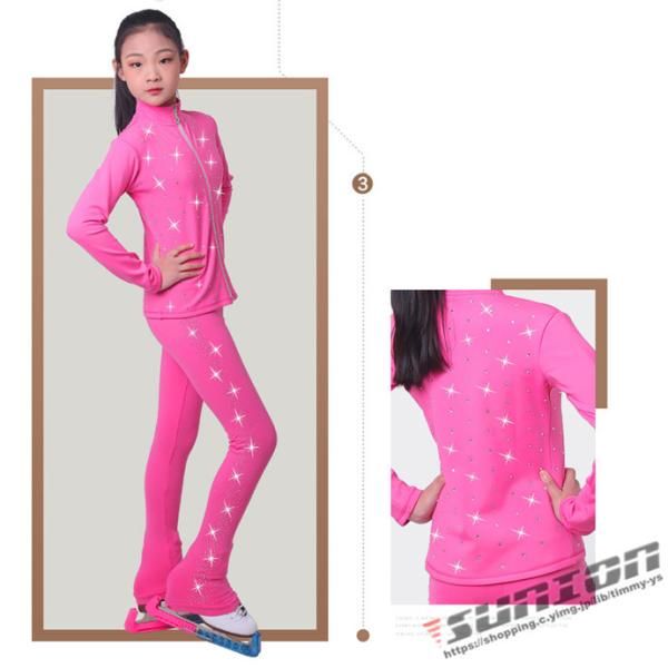 フィギュアスケート スケートウエア アイスフィギュアスケート 女子 アイススケート ジャケット ズボン 2点セット ストレッチ フリース 2111 sktware 05 -PINK