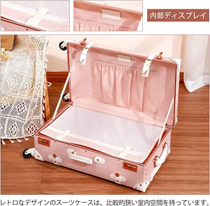urecity スーツケース クラシック トランク トランクケース キャリーケース かわいい プリンセスピンク Lサイズ 4 7宿泊