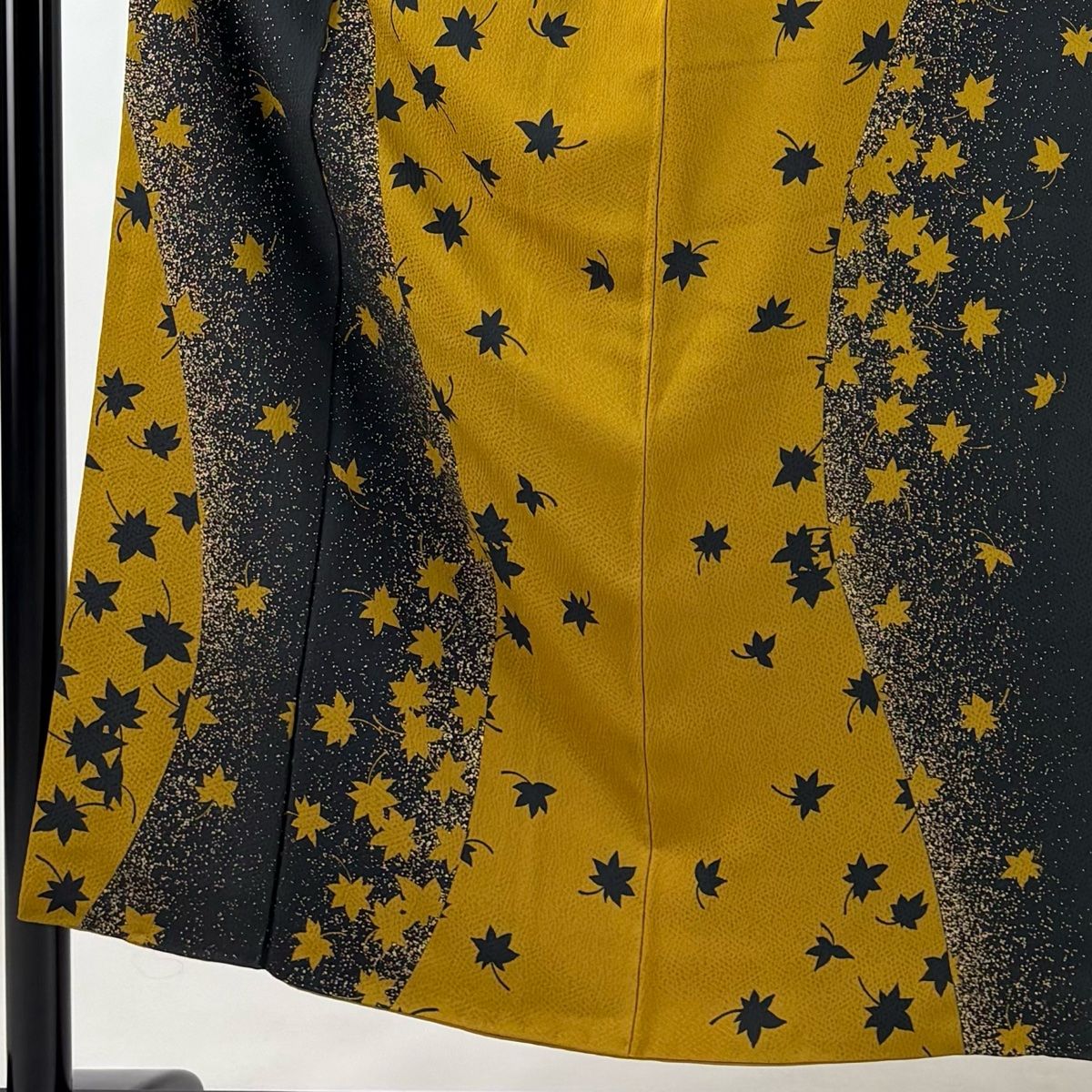 小紋 身丈151 cm 裄丈62 S 袷 楓 シルエット 金彩 山吹茶色 正絹 秀品