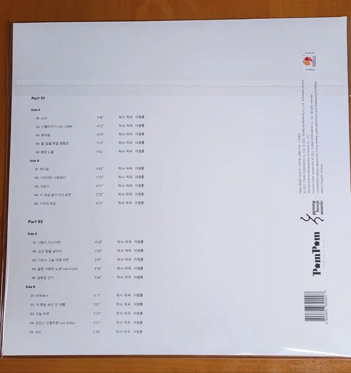 これは2022年にリリースされたイ・ムンセとイ・ヨンフンのレガシーLPです。未開封 2LP