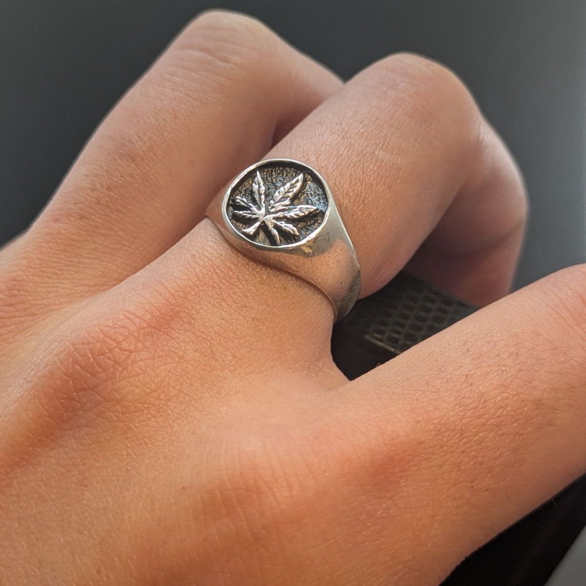 18号 スターリングシルバー925 刻印 シグネットリング カンナビス マリファナリーフ ヴィンテージ 英国 メンズ レディース